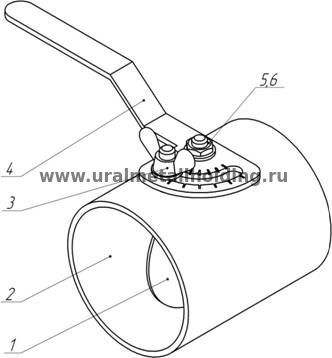 1 – заслонка, 2 – корпус, 3 – фиксирующая гайка, 4 – рукоятка, 5 – гайка, 6 - шайба